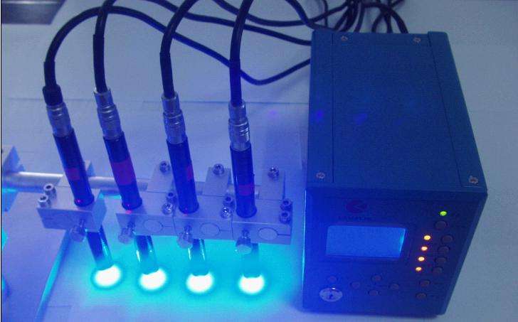 uv點光源固化機采用日本最新技術研發出的第四代紫外線固化裝置,采用高能量365nM的紫外線LED芯片,通過控製器進行各種程序模式轉換,將電信號轉換成光能量信號,也可以理解為高能量的紫外線LED芯片產生高純度的365NM紫外光,紫外光通過多組特製光學鏡頭總成,使能量高度集中均勻照射在UV膠水上,使UV膠水按照工藝要求迅速固化,來達到提高固化效率和生產效率。