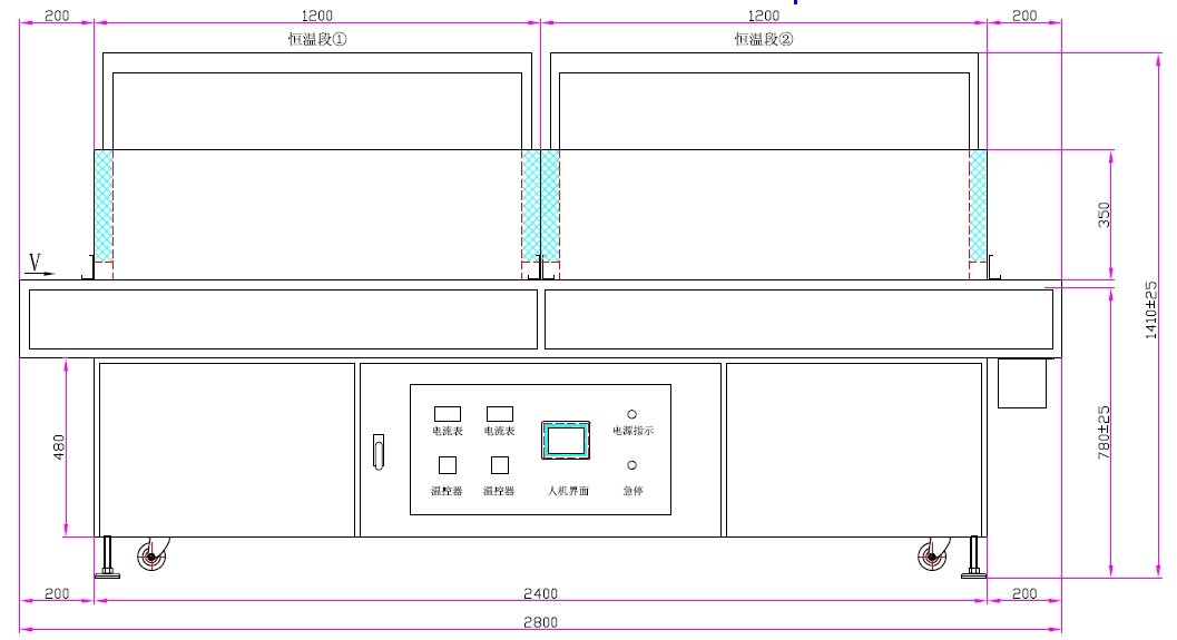 風刀均勻加熱特氟龍網帶隧道爐,智能溫控熱風循環隧道爐!